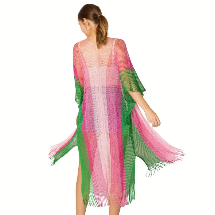 - Stylish Lurex Kimono with Pink and Green Gradient Stripes