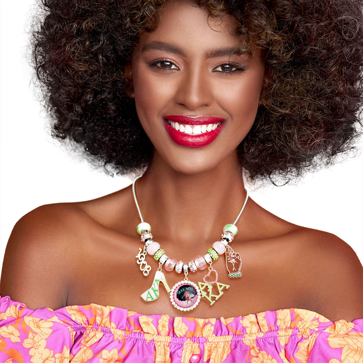 AKA Pink Green Sorority Charm Necklace