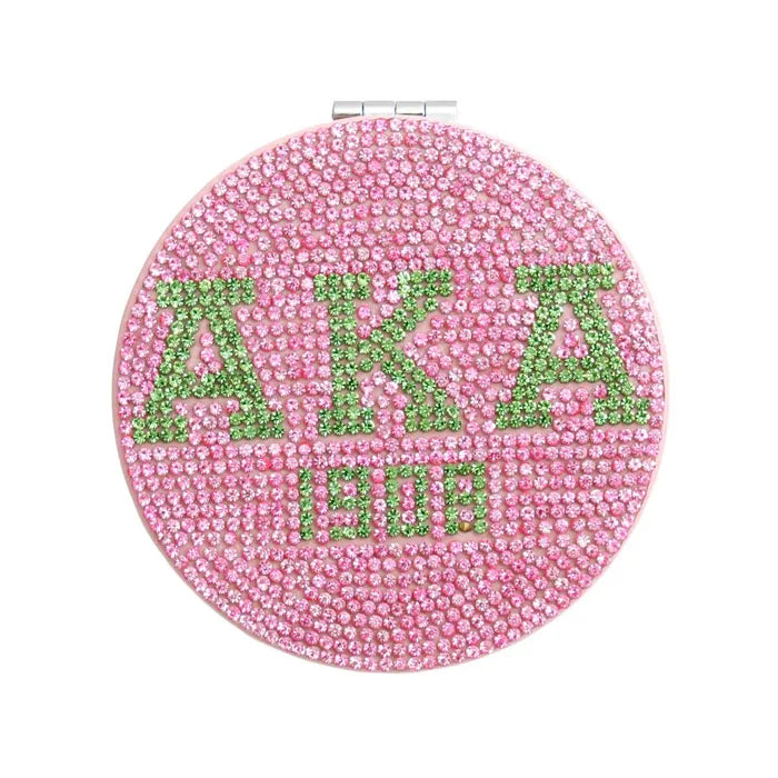 Elevate your elegance with the AKA Sorority Pink Bling Mirror Compact. Because every Alpha Kappa Alpha woman deserves to shine, no matter where she is.