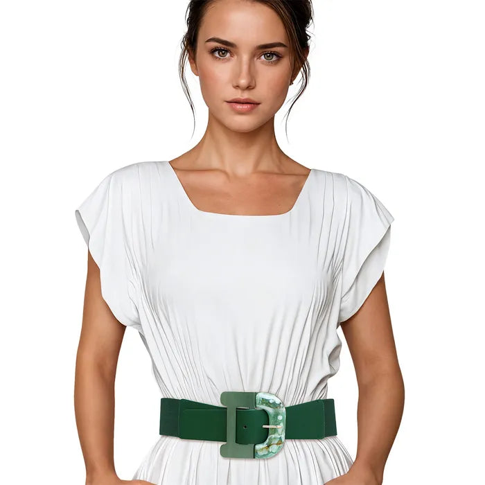 Belt Green Wide Marbled Buckle Stretch for Women