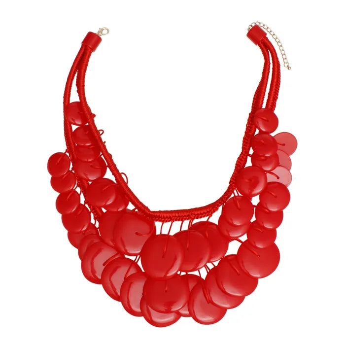 Bib Red Dramatic Long Cord Disc Necklace Women