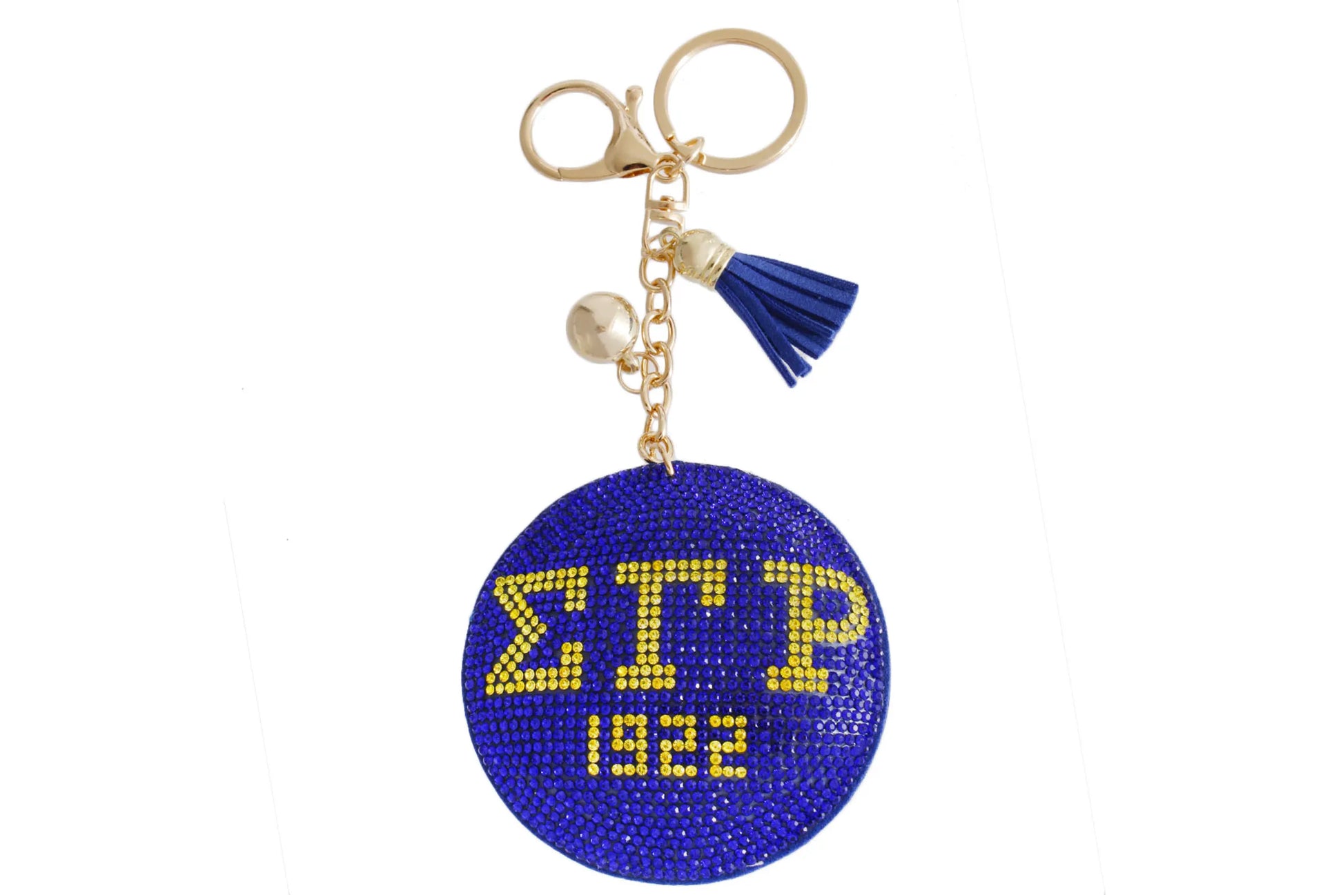 Description: Elevate your style with the mesmerizing charm of our Blue Gold Padded Sorority Keychain. Crafted with precision and adorned with a touch of elegance, this exquisite accessory seamlessly blends fashion and function. Whether you're a business-savvy woman or a sorority sister, this keychain is the perfect addition to your collection.