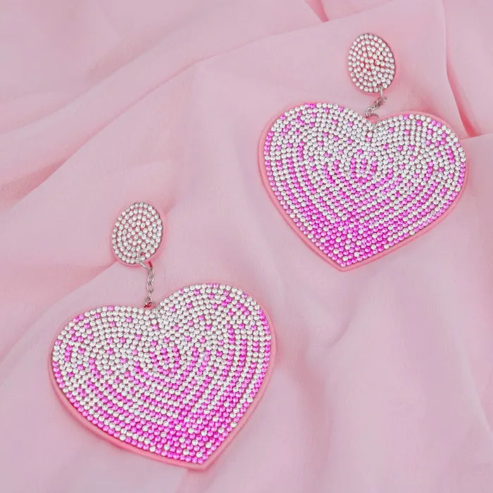Indulge in a touch of playful sophistication with our "Sparkling Love" Pink Heart Dangle Earrings. These earrings combine charm and sparkle with pink felt fabric round studs adorned with clear rhinestones. Featuring a delightful drop heart design with a felt backing and intricate pink and clear rhinestone detailing, these earrings are perfect for stealing the spotlight on Valentine's Day or any special occasion. The post backing ensures a secure and comfortable fit, making these earrings as practical as they are stunning.