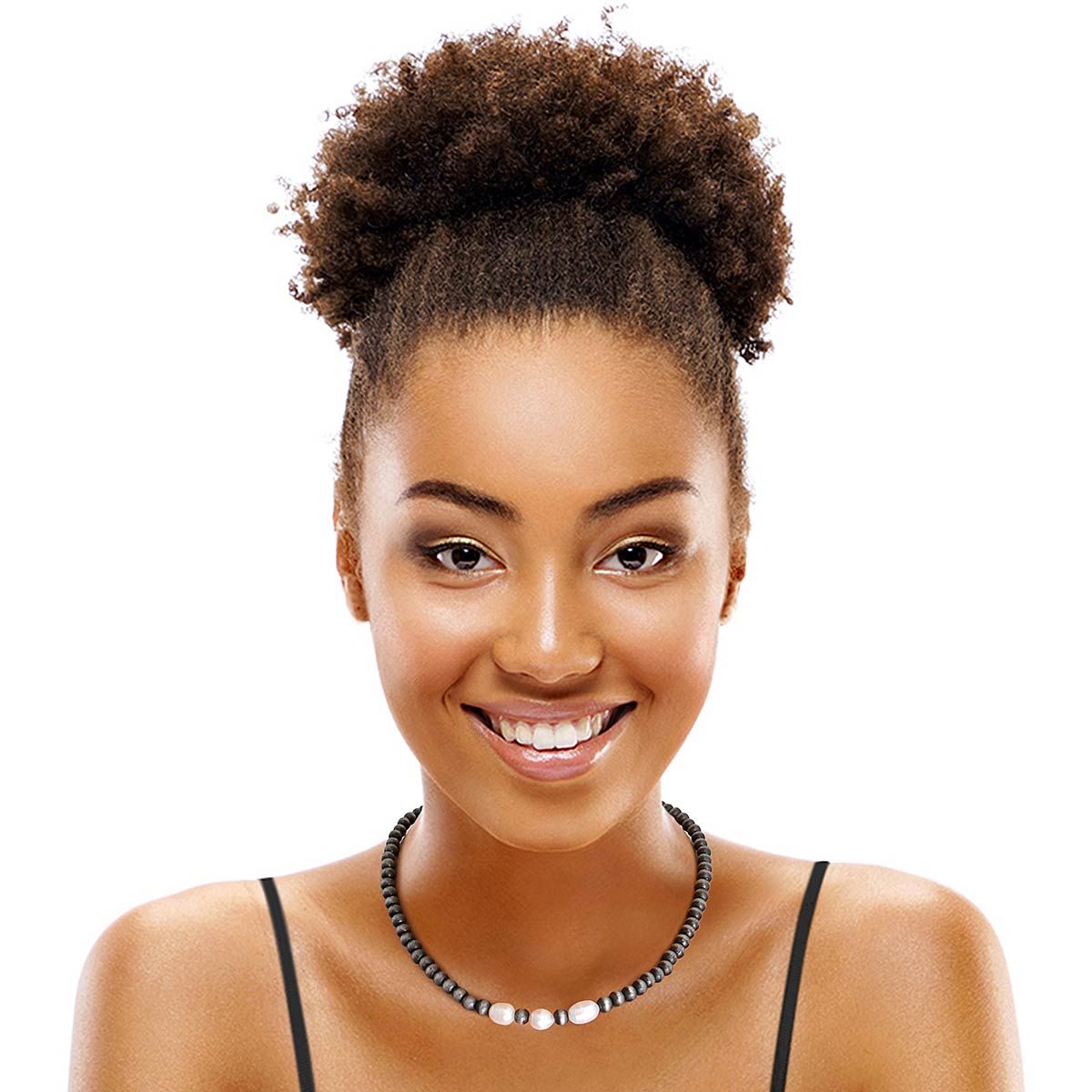 Single Strand Faux Navajo Bead and White Real Freshwater Pearl Detail Necklace