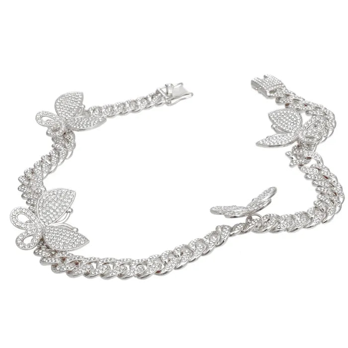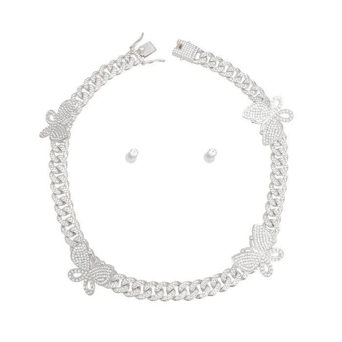 Silver Siren: Iced Butterfly Cuban Chain Set