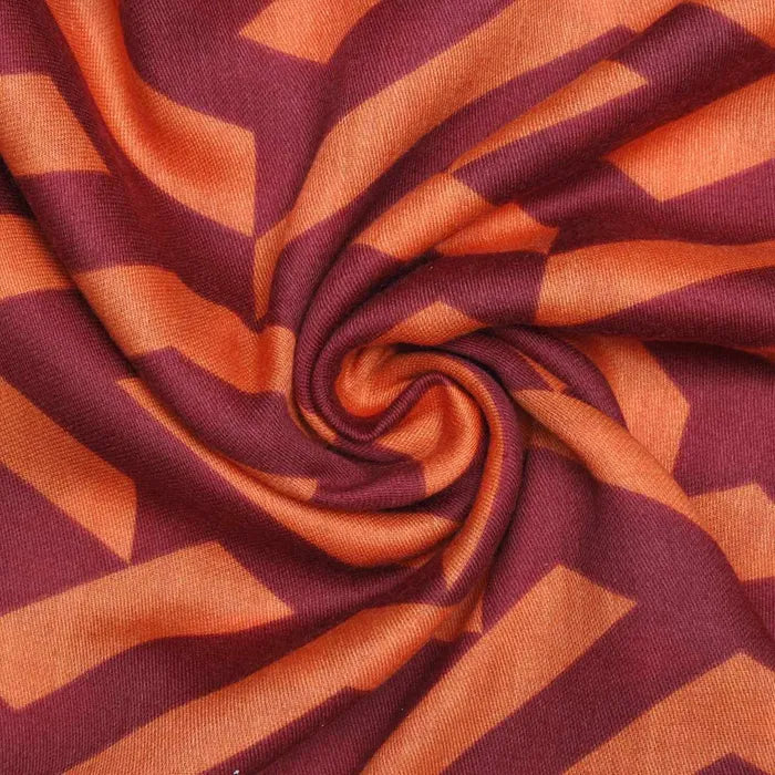- Vibrant geometric print in rich orange and rust tones
