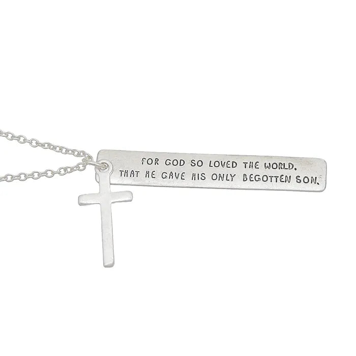 Divine Grace: Burnished Silver Bible Verse Cross Necklace