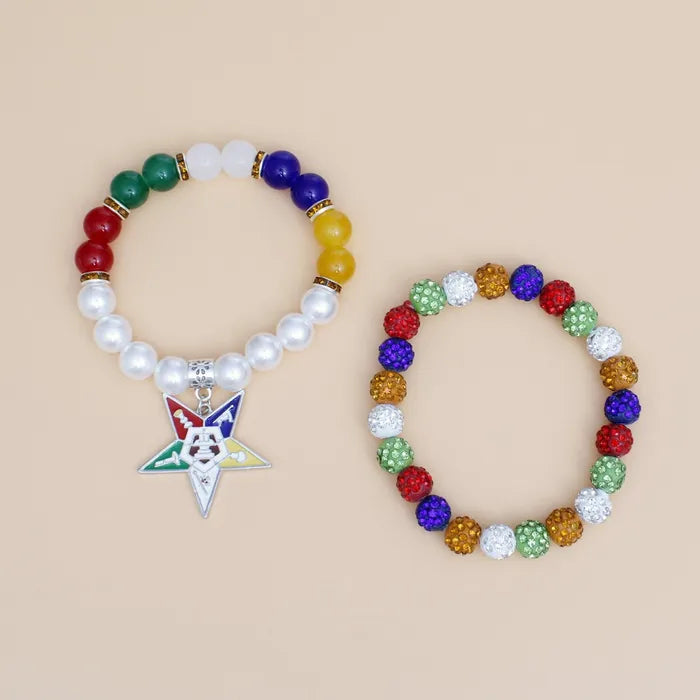 Glamorous Sisterhood: OES Sorority Pearl Ball Bead Star Charm Bracelets