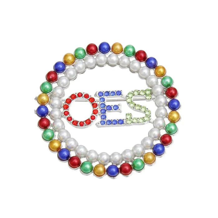 Get ready to shine brighter than the stars with this OES Sorority Round Multicolor Pearl Brooch Pin! Designed to reflect the regal elegance of the Order of the Eastern Star, this brooch is all about making a statement. The classic round silver metal design is layered with rows of white and multicolor pearls, radiating sophistication from every angle. Topped off with the OES rhinestone emblem, this pin will have you looking both bold and beautiful, no matter where you wear it.