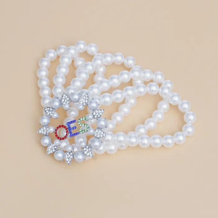 OES Sorority White Pearl 5 Strand Bracelet Women