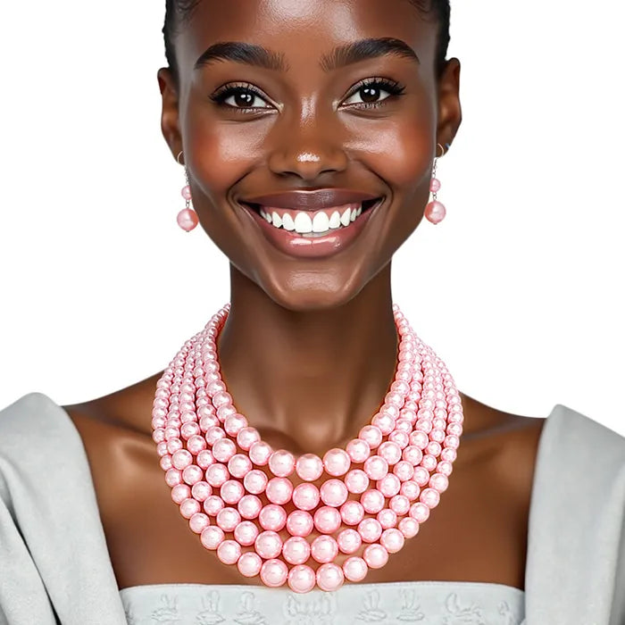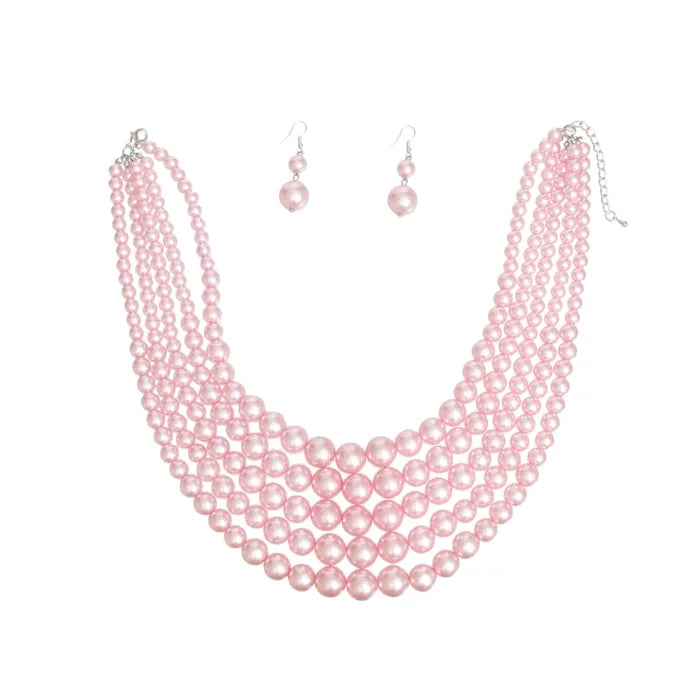 Blush Royale: Wholesale Pink Pearl 5-Strand Necklace Set