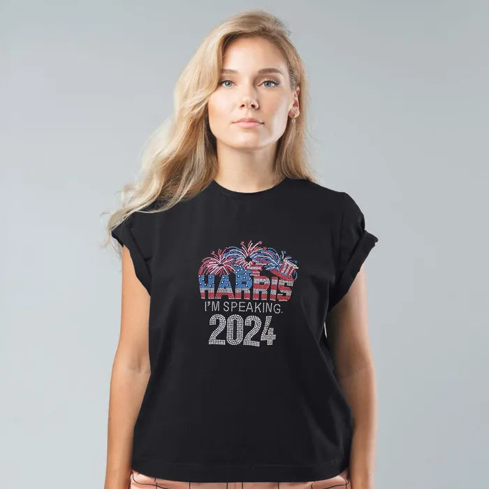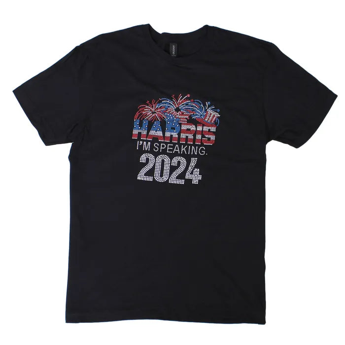 Bold & Fearless: Medium Black Kamala Harris "I'M SPEAKING" Bling Tee