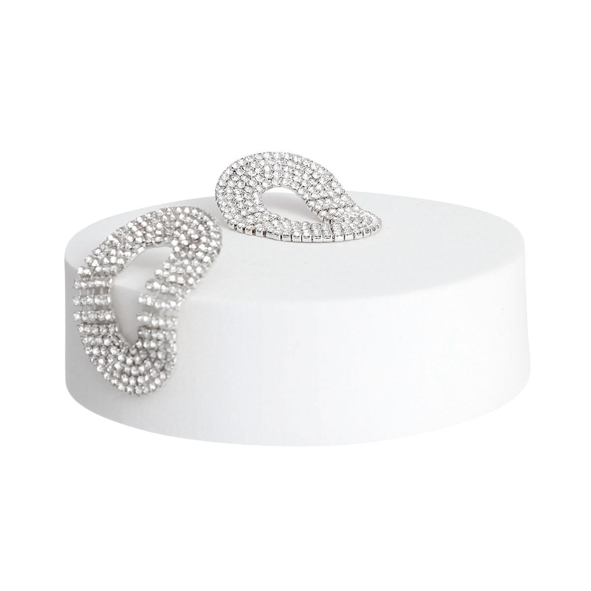 Silver Metal and Clear Rhinestone 5 Line Oval Drop Earrings. Earrings measure 1.15 inches wide.