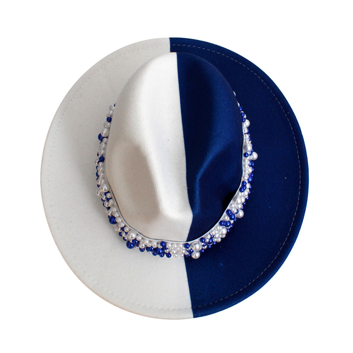 ZPB Sorority Blue White Fedora Pearl Hat for Women